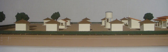 A maqueta representa uma unidade sanitária construída, provavelmente, segundo modelo tipo de unidades individuais, de responsabilidade do Gabinete de Urbanização Colonial.